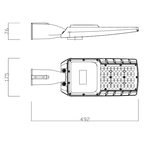 La farola impermeable ST33-100W está construida con aluminio fundido de alta resistencia, lo que combina durabilidad y excelente disipación del calor. Diseñado para iluminación exterior, es adecuado para patios, plazas, carreteras, estacionamientos y otros lugares. Su fuente de luz LED de alto brillo de 100W consigue una eficiencia luminosa de 130 lm/W, garantizando la conservación de energía y la protección del medio ambiente. Su construcción sellada resiste duras condiciones climáticas, incluidas fuertes lluvias y tormentas de polvo, y funciona en un amplio rango de temperatura de funcionamiento de -30°C a 50°C. La carcasa de aluminio fundido a presión está tratada con un tratamiento antioxidante para resistir impactos y corrosión.