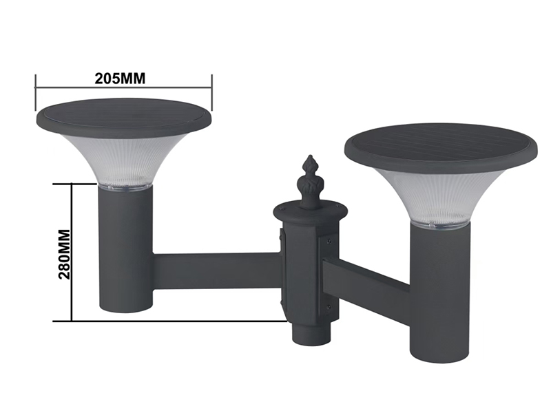 La luz solar para jardín PY-SG018-8W de doble bombilla presenta un diseño simétrico único, que proporciona un rango de iluminación más amplio para patios, pasarelas y porches. Esta luz solar mejorada mantiene su filosofía respetuosa con el medio ambiente y cuenta con bombillas LED duales de 8 W. No se requiere fuente de alimentación externa, lo que permite que la luz solar brille el doble por la noche. La luz está cubierta con un panel solar de silicio monocristalino de alta eficiencia y un sistema de control de luz inteligente, que se carga automáticamente durante el día y se ilumina durante la noche. La batería de litio de alta capacidad incorporada proporciona de 6 a 8 horas de iluminación continua.